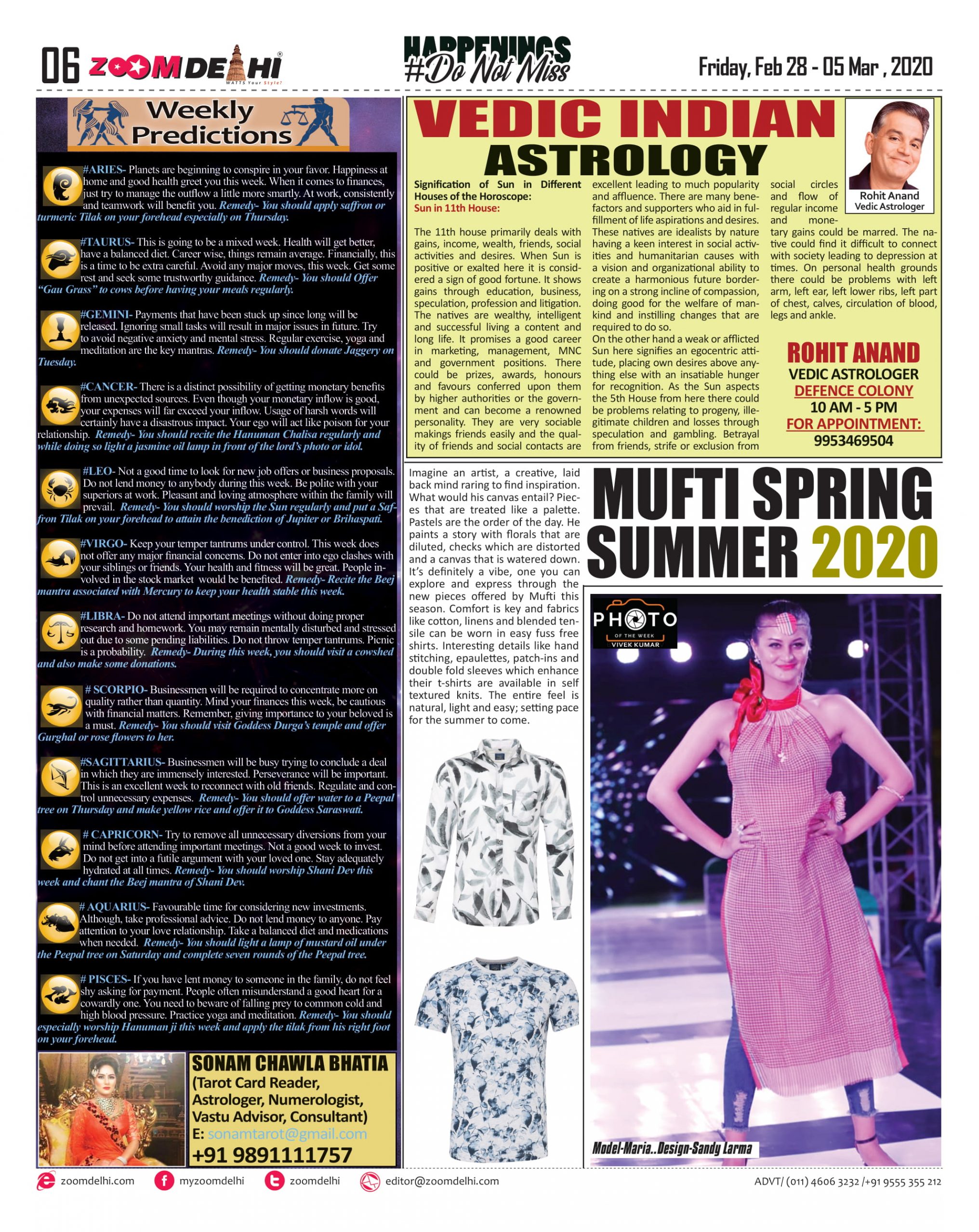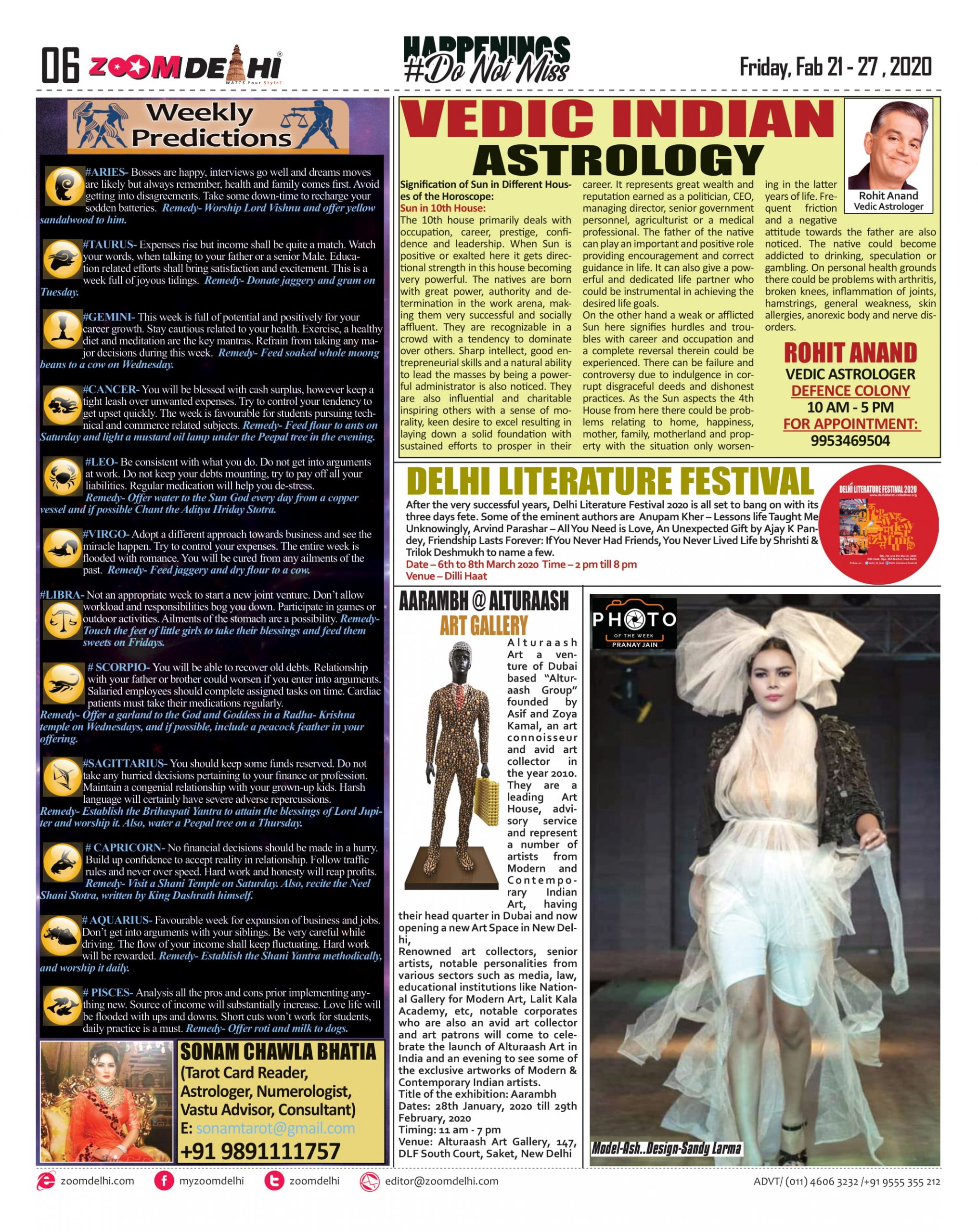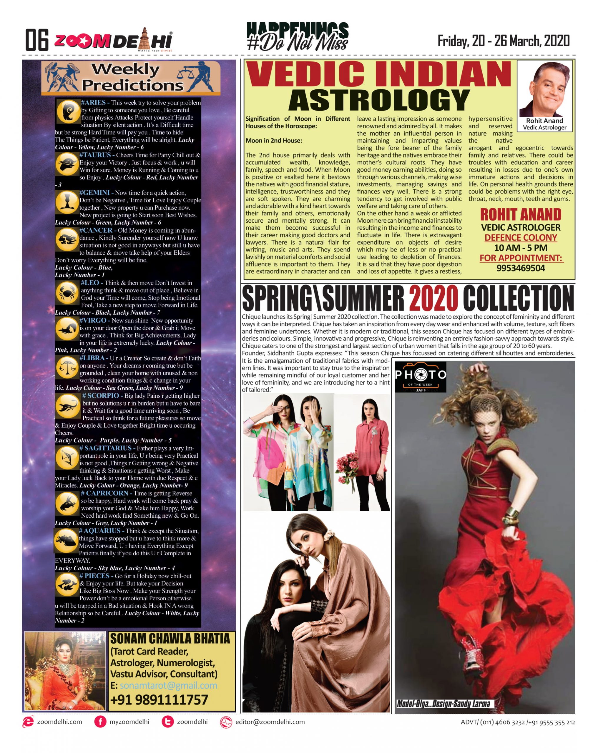 Zoom Delhi is a leading weekly newspaper in Delhi which updates you on all the latest news and trends in fashion, food, party, lifestyle and travel. It is delivered at the readers doorstep powered by electrical writing and magical visuals.